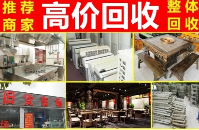 餐馆回收:餐桌椅、桌椅板凳、厨房设备、冻库、展示柜、不锈钢操作台、冷藏柜整体回收等。